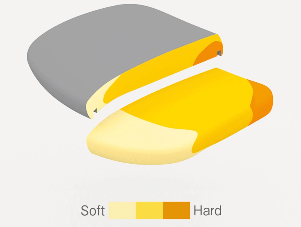 異硬度クッションを開発したオカムラは、30年以上にわたって椅子のクッションを製造しており、異硬度クッションを採用したチェアを多く販売しています。